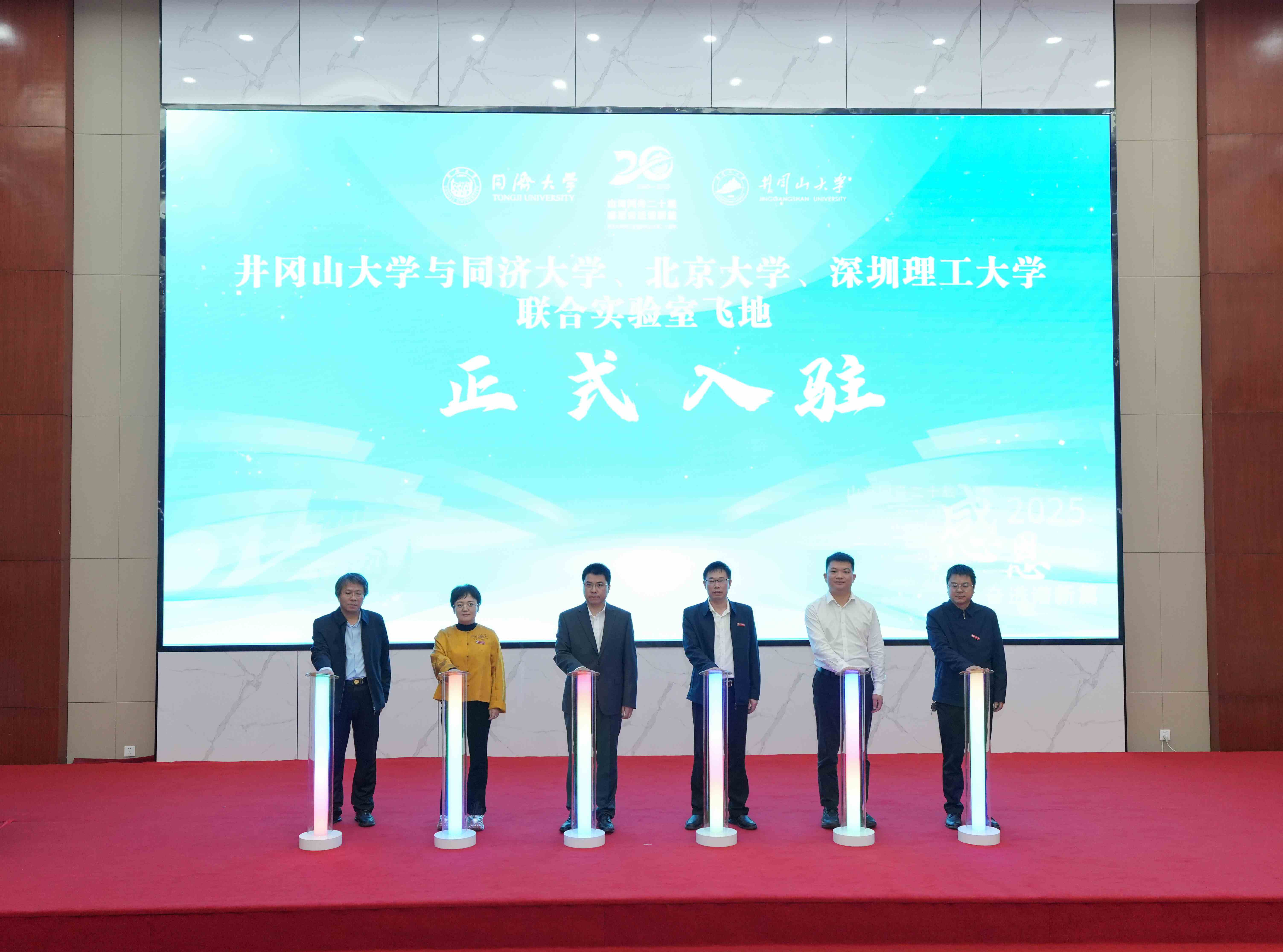 开幕式上,同济大学党委副书记刘润与井冈山大学党委书记罗旭彪共同为“同济大学技术转移中心井冈山大学分中心”揭牌。由同济大学、深圳理工大学、北京大学与井冈山大学先后联合共建的实验室飞地也正式入驻。分中心的揭牌和联合实验室飞地的落地运行,标志着井冈山大学在破解高层次人才瓶颈、推动科技创新方面迈出关键一步。井冈山大学将以此为契机,聚焦技术对接、成果转化与人才培养,加快实现从“输血帮扶”到“造血赋能”的转型,为区域产业发展注入新动能。
