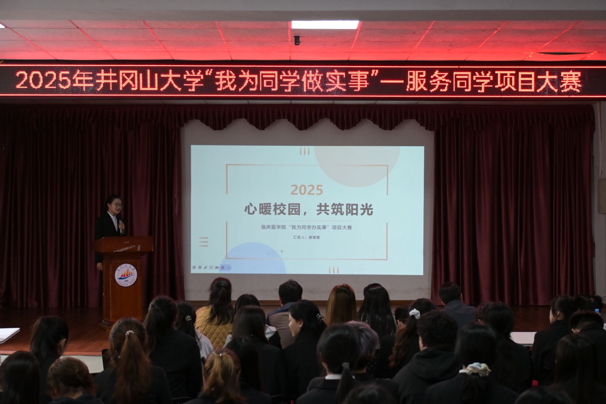 为深入学习贯彻习近平总书记关于青年工作的重要思想,发挥学生会联系青年的桥梁和纽带作用,提升学校学生会组织的凝聚力与服务力,聚焦广大同学普遍要求,树立学校“我为同学做实事”优质示范典例,11月6日下午,校团委举办“我为同学做实事”服务同学项目大赛,全校22个项目参加校级决赛。校团委书记郭敏娜、学生工作处心理健康教育与咨询中心主任戴益信、校团委副书记夏婷婷、后勤保障处副处长何平荣担任比赛评委,来自各学院的学生代表100余人参与此次比赛。