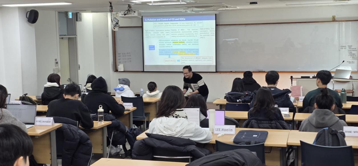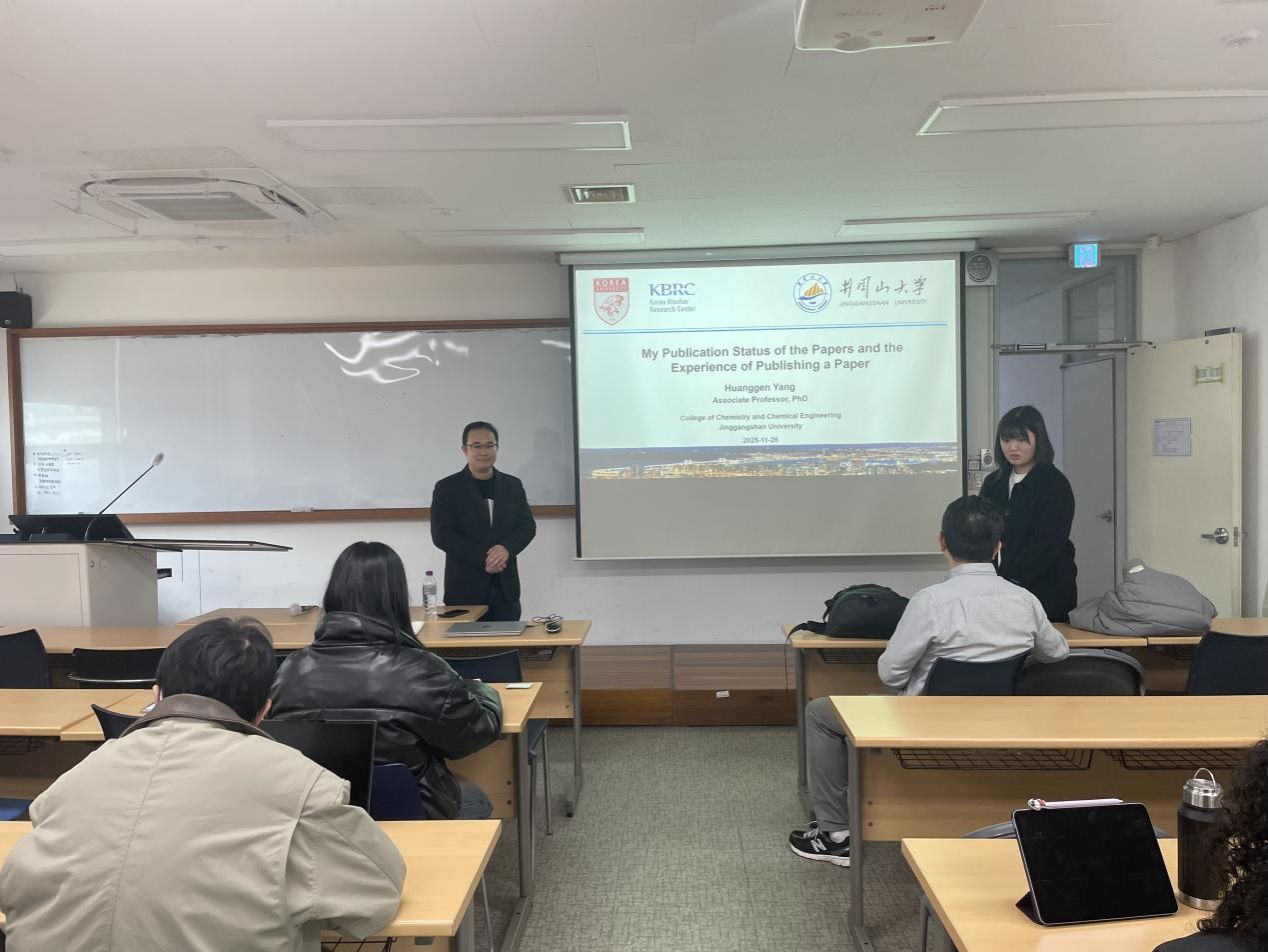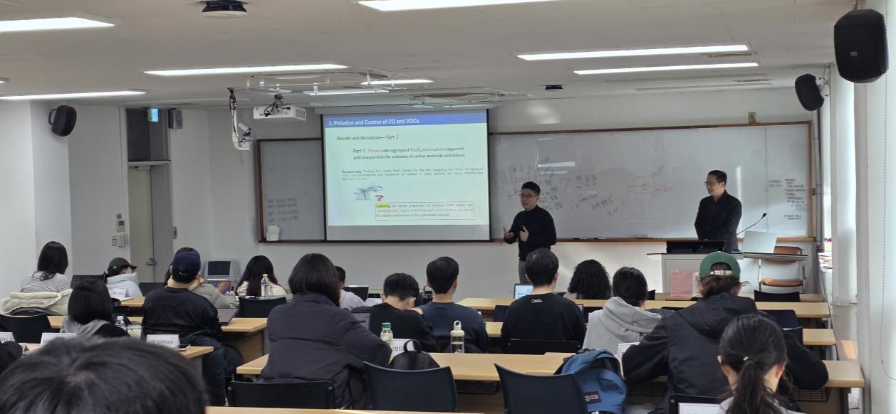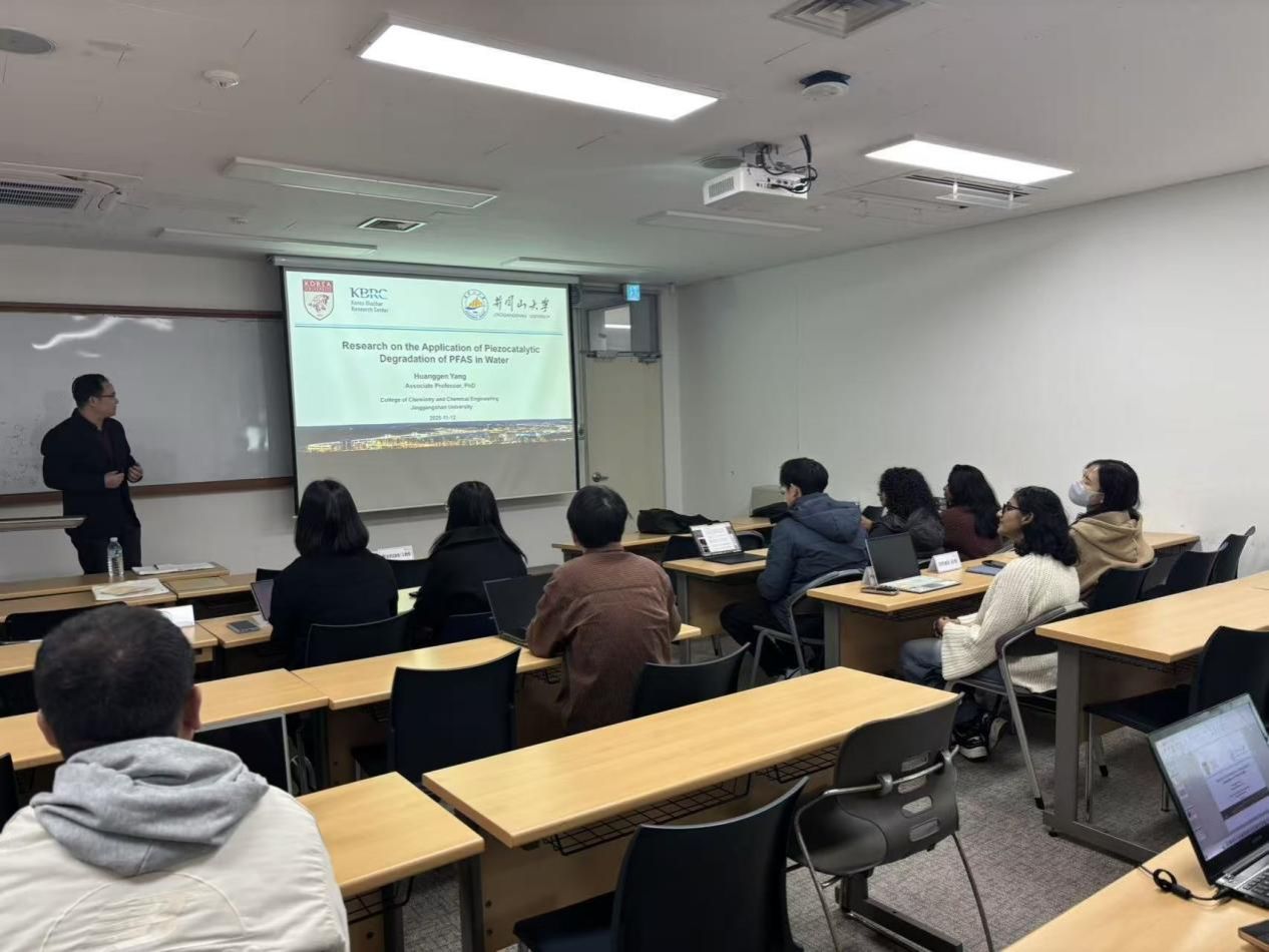 目前,杨黄根在国家留学基金委(CSC)的支助下,以访问学者身份正在高丽大学Yong Sik Ok教授组进行为期一年的学习和研究。此次研究生班的课程为《Global Research, Academic Writing, and Research Intelligence for Graduate Students》,该课程旨在培养学生具备高级研究技能,注重学术工作的整个周期,即从撰写和发表论文到建立国际合作关系等。通过各种案例研究等模块,帮助研究生做好准备,成为在全球具有影响力和知名度的研究人员。结合该课程要求,杨黄根分别在两次课上做了“Research on the Application of Piezocatalytic Degradation of PFAS in Water”以及“My Publication Status of the Papers and the Experience of Publishing a Paper”两个报告。报告结束后,与上课的研究生同学进行了深入交流与探讨。