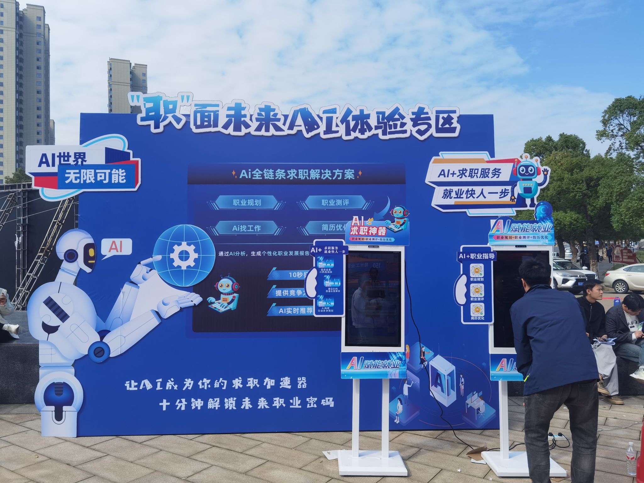 双选会现场还为毕业生专门设有“职”面未来AI体验专区,并邀请就业指导专家现场诊断毕业生简历制作的问题。通过“AI+职业指导”终端机数据的分析和专家的指导,许多毕业生生明确了职业发展方向,重新树立了人生的发展目标。